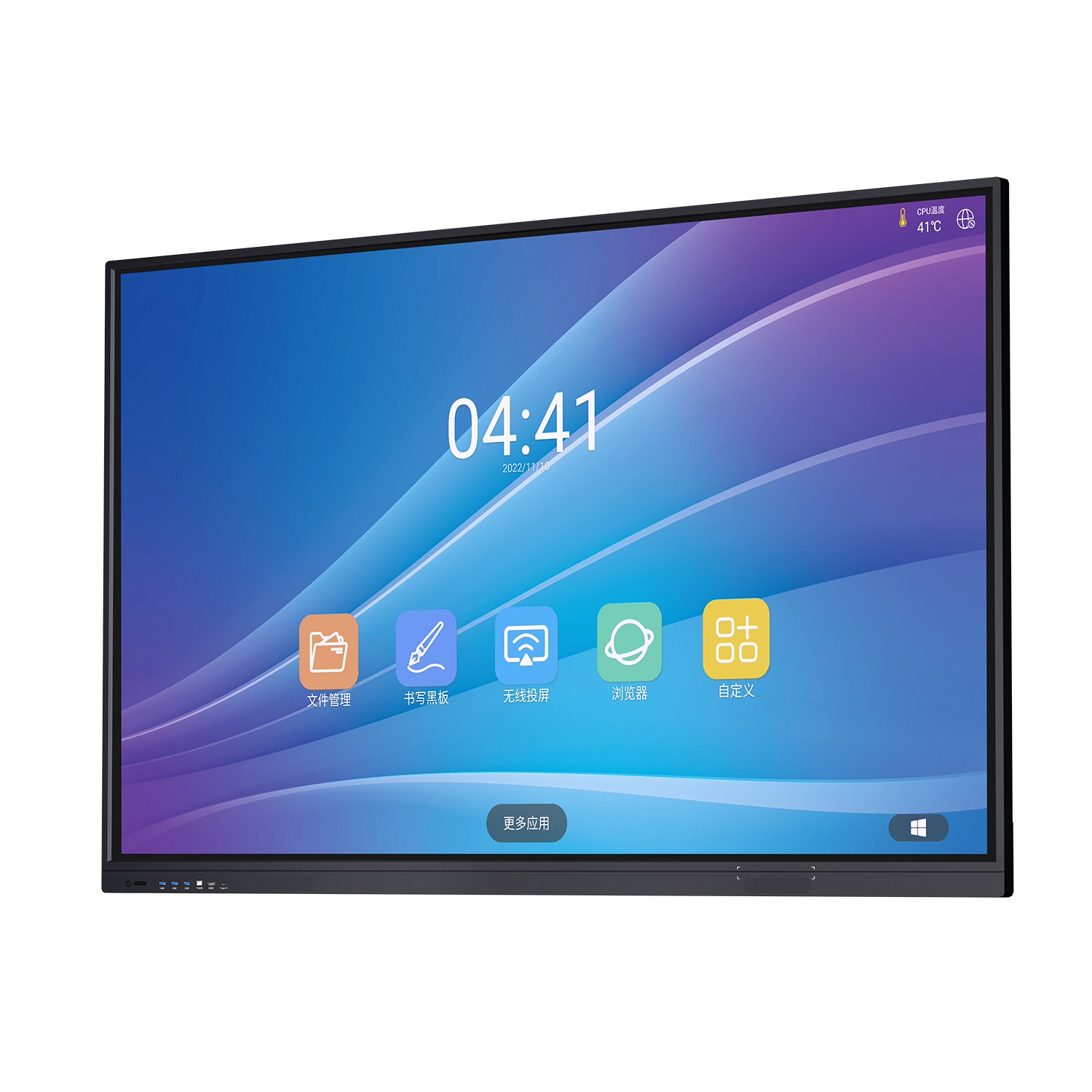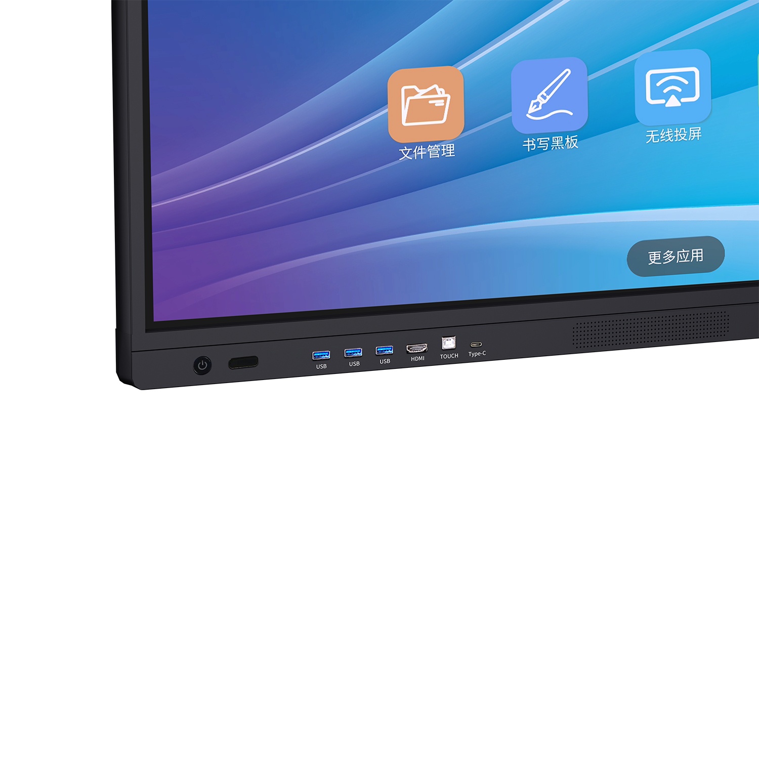 5、前置三路USB接口支持雙通道共享,一路HDMI輸入,一路TOUCH ,一路TYPE-C(數(shù)據(jù)讀取);