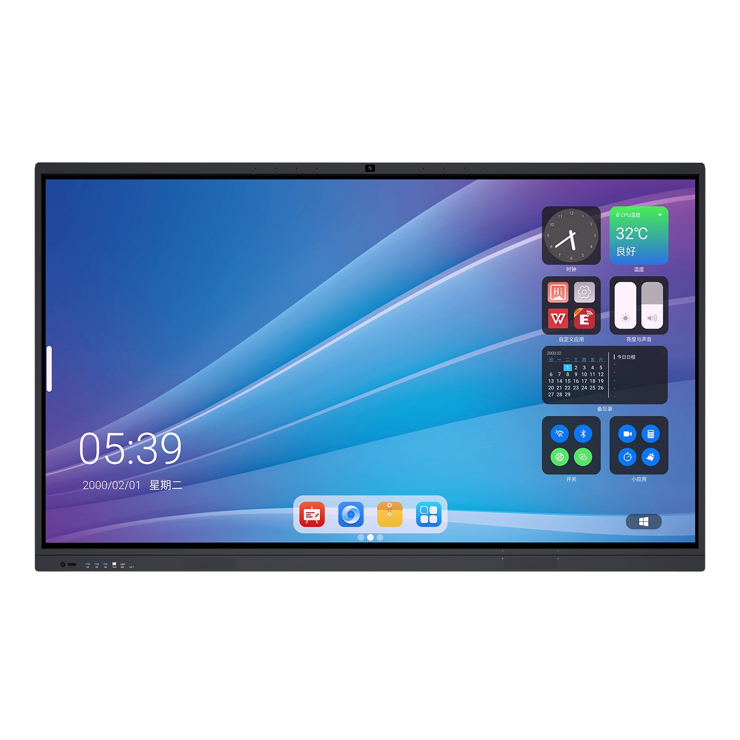 5、前置三路USB接口支持雙通道共享,一路HDMI輸入,一路TOUCH ,一路TYPE-C(數(shù)據(jù)讀?。?;