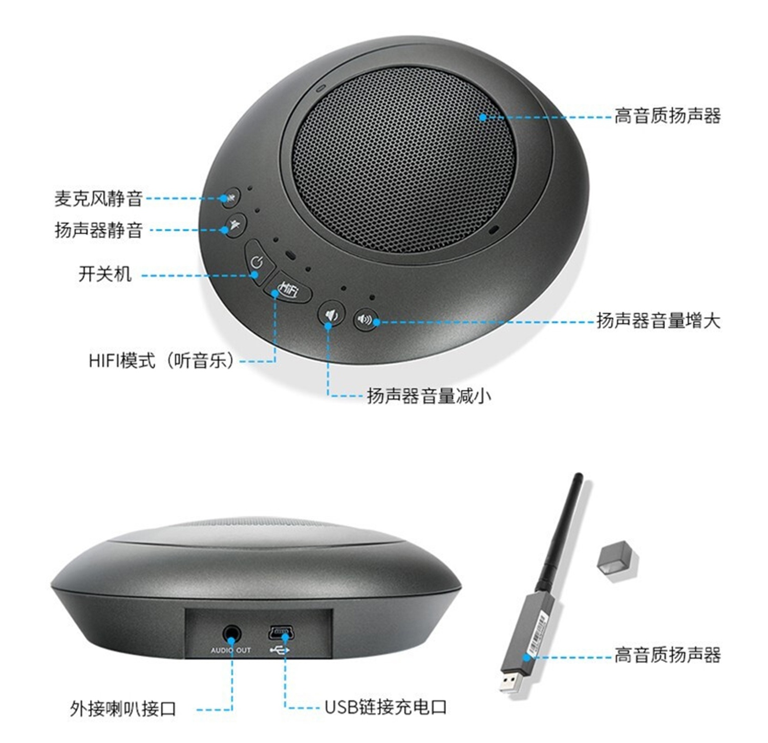 5、揚聲器:內(nèi)置大功率揚聲器,AGC自動增益控制,清晰、平穩(wěn)輸出會議內(nèi)容
